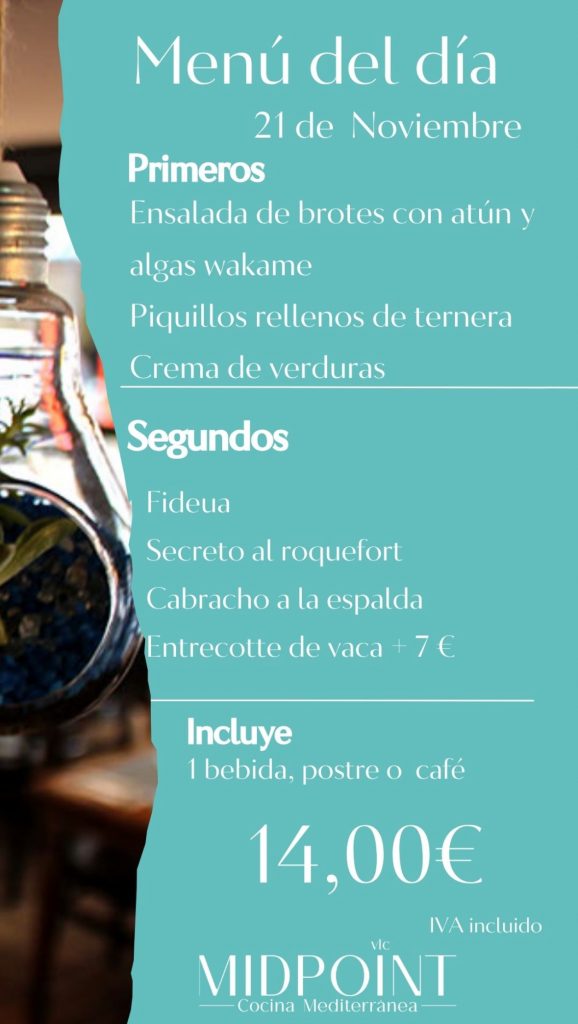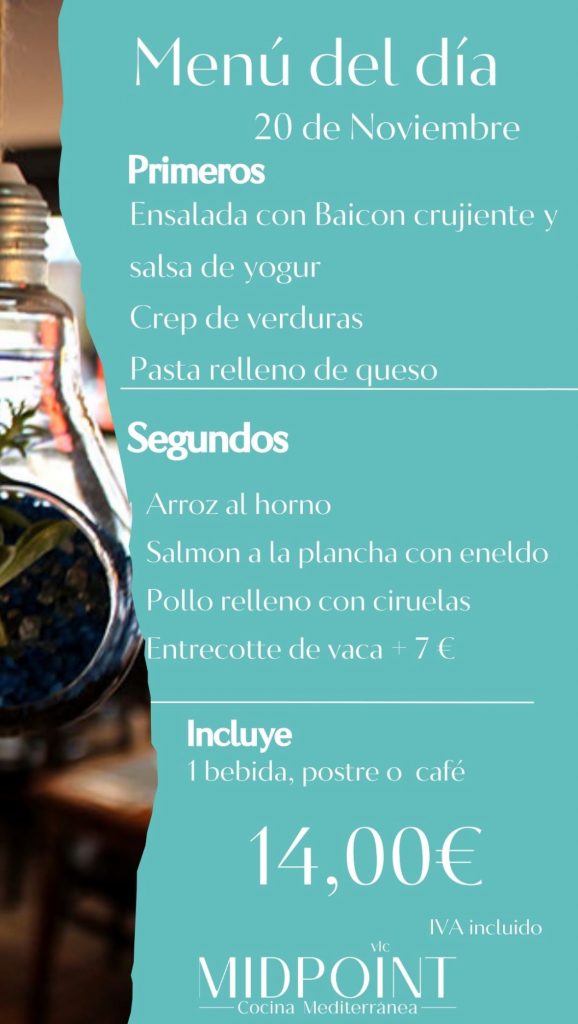 *Incluye entrantes, un principal a elegir y postre a compartir. (IVA incluido)